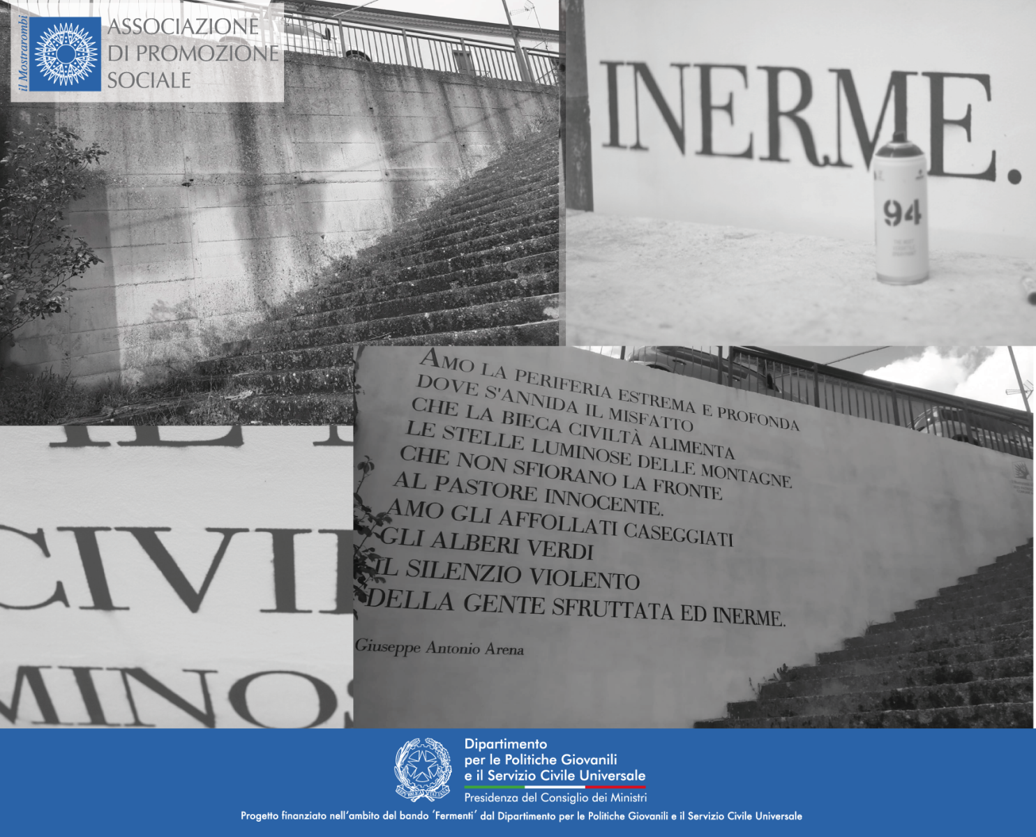 Murales in Via Michele Capalbo Il murales, realizzato su iniziativa dell'associazione ETS "Il Mostrarombi APS", riproduce una poesia dell'autore acrese Giuseppe Antonio Arena selezionata dalla raccolta 'Litofago'. Si accettano proposte da parte della cittadinanza per completare l'opera con un'illustrazione a corredo della poesia.